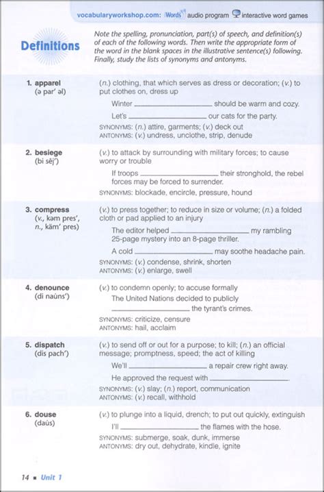 Read Online Vocabulary Workshop Enriched Edition Level E Answers Unit 5 PDF